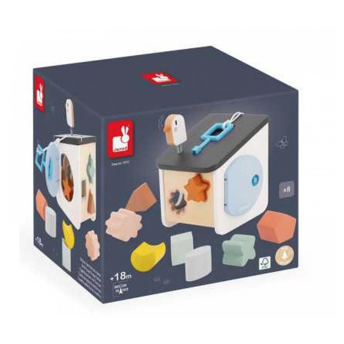 JOLIE BOITE À FORMES : En forme de petite cabane pour oiseaux, elle propose 8 formes différentes à encastrer, à récupérer par le toit amovible ou en ouvrant la porte avec la clé attachée et rangée sur le toit, à côté de l'oiseau sur ressort qui gigote. JEU ÉDUCATIF : Astucieux, la couleur de chaque pièce correspond au contour coloré sur la boîte. Idéal pour apprendre les formes et les couleurs. Votre tout-petit développe sa dextérité, sa motricité fine et sa coordination main-?il en s'amusant. PRATIQUE ET LUDIQUE : Jeu d'encastrement pour enfants de 18 à 36 mois - Boîte compacte facile à transporter - Fond en feutrine pour atténuer le bruit des pièces qui tombent - Jeu Janod en bois FSC - Peinture à l'eau - Dimensions : 16 x 15,6 x 20,8 cm SWEET COCOON : Inspirée des tendances actuelles, notre collection Sweet Cocoon est une gamme de jouets premier âge aux couleurs délicates et pastel associées au bois naturel pour accompagner les premiers apprentissages des tout-petits tout en douceur. LE POUVOIR DU JEU : Avec des collections audacieuses et innovantes, Janod accompagne les enfants dans la plus belle des aventures : grandir ! De beaux jouets pour apprendre sans même s'en apercevoir, explorer le monde, rêver et partager? C'est bien joué !