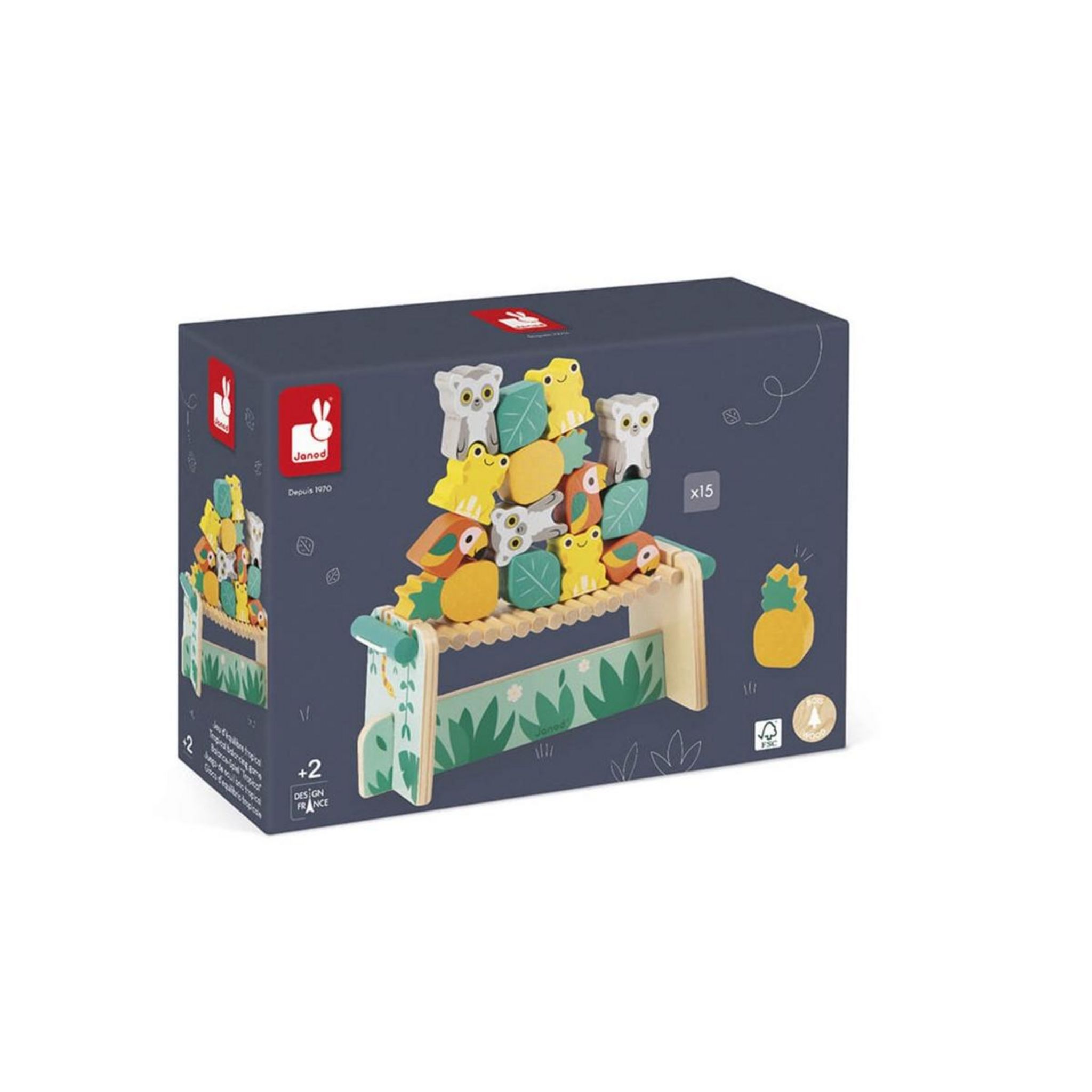 Y aura-t-il de la place pour tous les animaux de la jungle sur le pont suspendu ? Composé d'un pont de singe en bois au c?ur de la forêt tropicale et d'une foule d'animaux souhaitant traverser, le Jeu d'Equilibre Tropical Tropik pourra se jouer seul ou à plusieurs. Dans un premier temps, il faudra assembler les quatre parties du point puis empiler chaque pièce sans tout faire tomber. Une fois les 15 pièces empilées, la partie est gagnée. Grâce à ce jeu coloré, votre bout de chou développera sa dextérité et mettra en ?uvre toute sa concentration. Il devra être minutieux pour remporter la manche ! Caractéristiques : Jeu d'Equilibre Tropical Tropik. Certification FSC. Matière : Bois