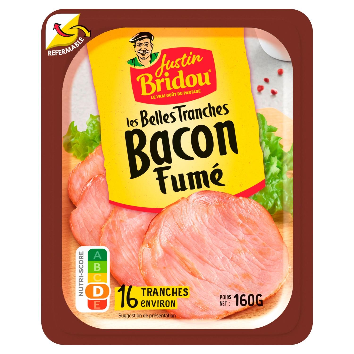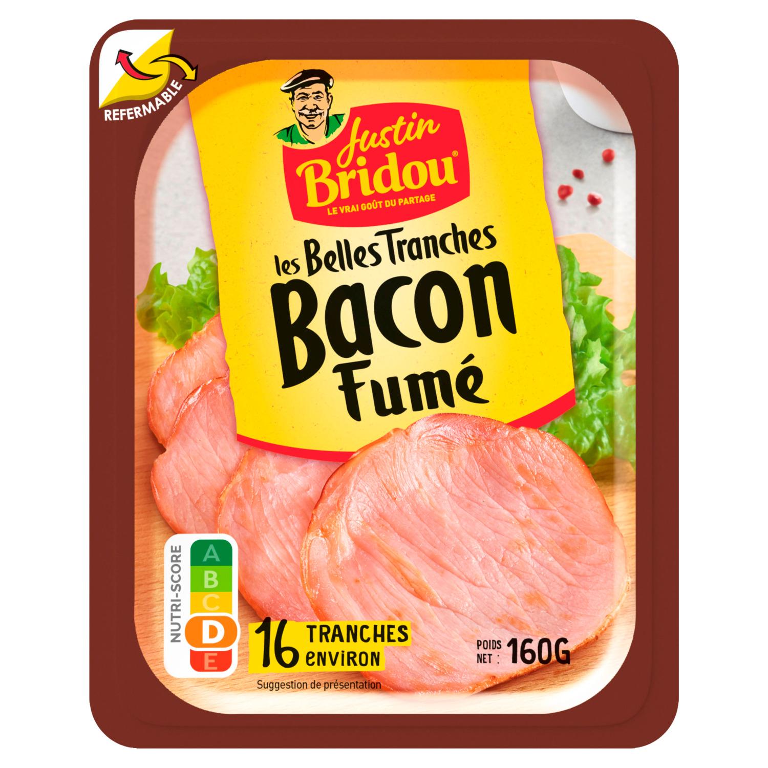 Laissez-vous tenter par le savoureux Bacon Justin Bridou, fumé au bois de hêtre pour vos raclettes, vos burgers et tous vos repas en famille ou entre amis! Pour toujours plus de praticité, son emballage refermable lui permet de préserver sa saveur et sa fraîcheur!