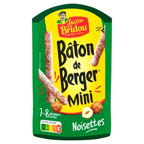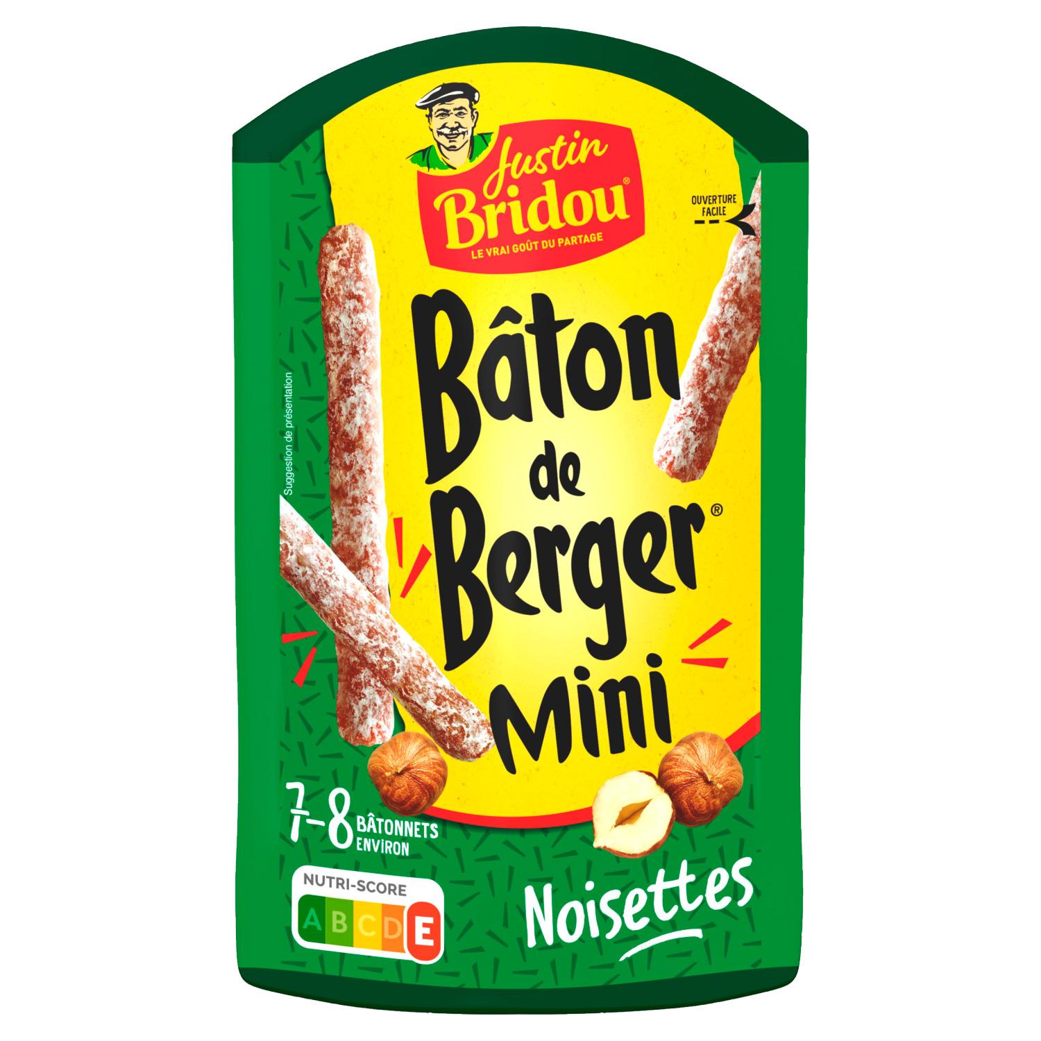 Justin Bridou réinvente l’apéritif avec les Bâtons de Berger Mini : de délicieux bâtonnets de saucisson sec aux noisettes, qui se picorent avec plaisir, en famille ou entre amis.