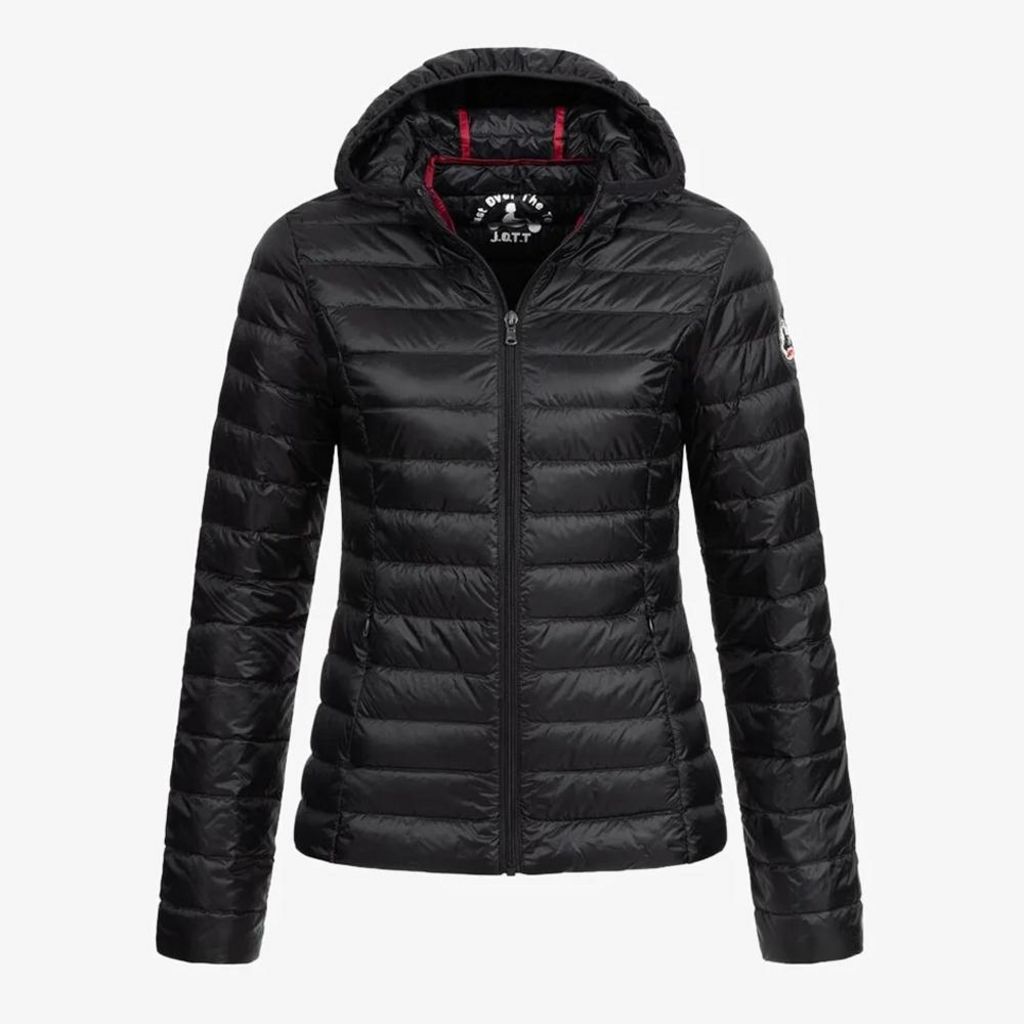 Craquez pour cette doudoune de la marque JOTT à prix bas !Coloris : Noire Matière matelassée satinée et déperlanteManches longuesGarnissage en plumesCoupe ajustéeCapuche2 poches côtés invisiblesCoutures intérieures de couleur contrastéeLogo feutrine original manche gaucheRemplissage : 90% duvet, 10% plumeComposition : 100% Polyamide PochonnableNous vous conseillons de prendre une taille au-dessus de votre taille habituelle !