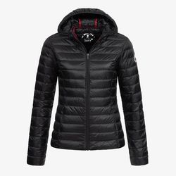 Craquez pour cette doudoune de la marque JOTT à prix bas !Coloris : Noire Matière matelassée satinée et déperlanteManches longuesGarnissage en plumesCoupe ajustéeCapuche2 poches côtés invisiblesCoutures intérieures de couleur contrastéeLogo feutrine original manche gaucheRemplissage : 90% duvet, 10%