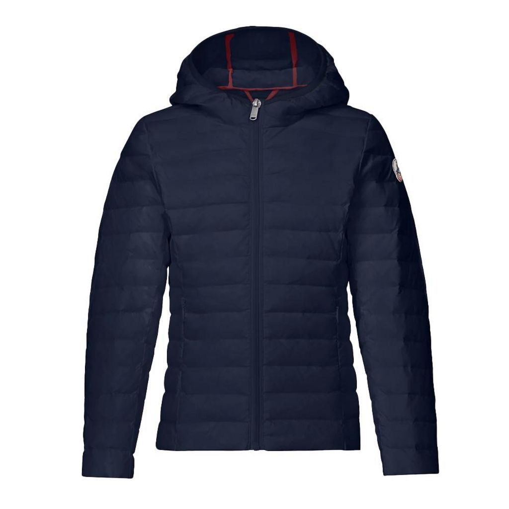 Craquez pour cette doudoune JottColoris : Marine Matière matelassée satinée déperlanteGarnissage en plumes et duvet certifié >Capuche2 poches côtés invisiblesCoutures intérieures de couleur contrastéesLogo feutrine manche gauchePochonnableMatière : 100% polyamideDoublure : 100% polyamideRemplissage