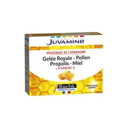 Complément alimentaire Gelée royale pollen propolis miel et vitamine C en ampoules sans sucres ajoutés