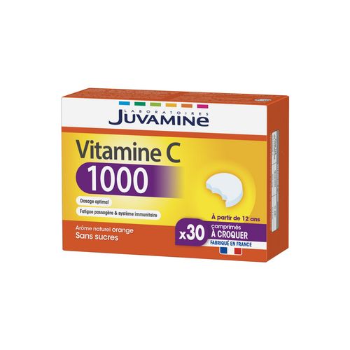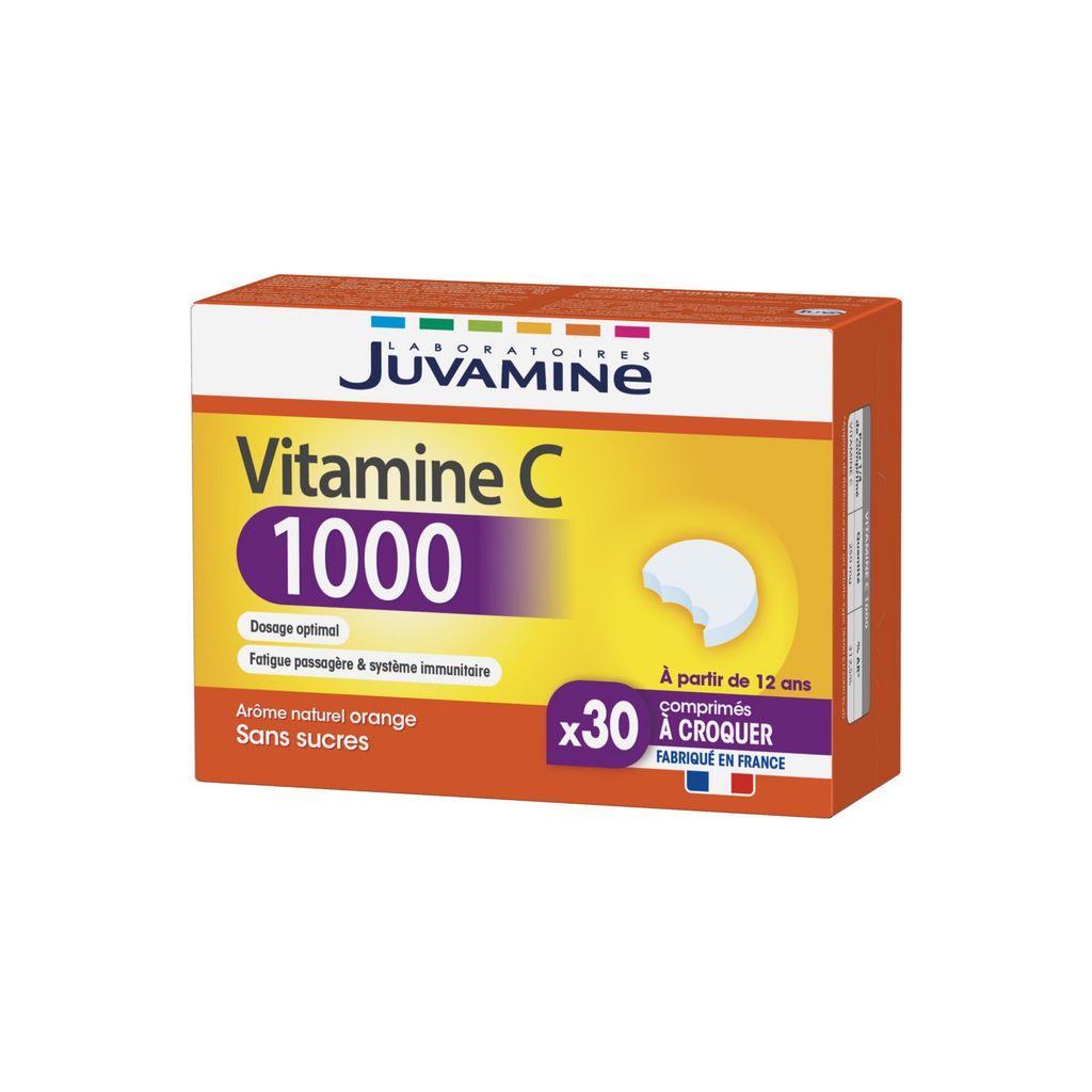 VITAMINE C 1000, des laboratoires Juvamine, aide à réduire la fatigue et contribue au fonctionnement normal du système immunitaire. La vitamine C fait partie des nutriments essentiels de