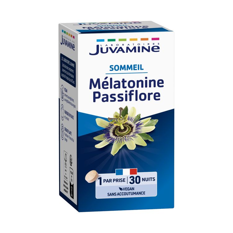 Les Laboratoires Juvamine ont associé 2 actifs pour une triple action sur le sommeil : la mélatonine et la passiflore.