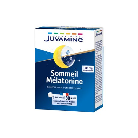 SOMMEIL MÉLATONINE est un complément alimentaire à base de mélatonine, sans accoutumance. Il contient 1,85 mg de mélatonine par dose journalière.
