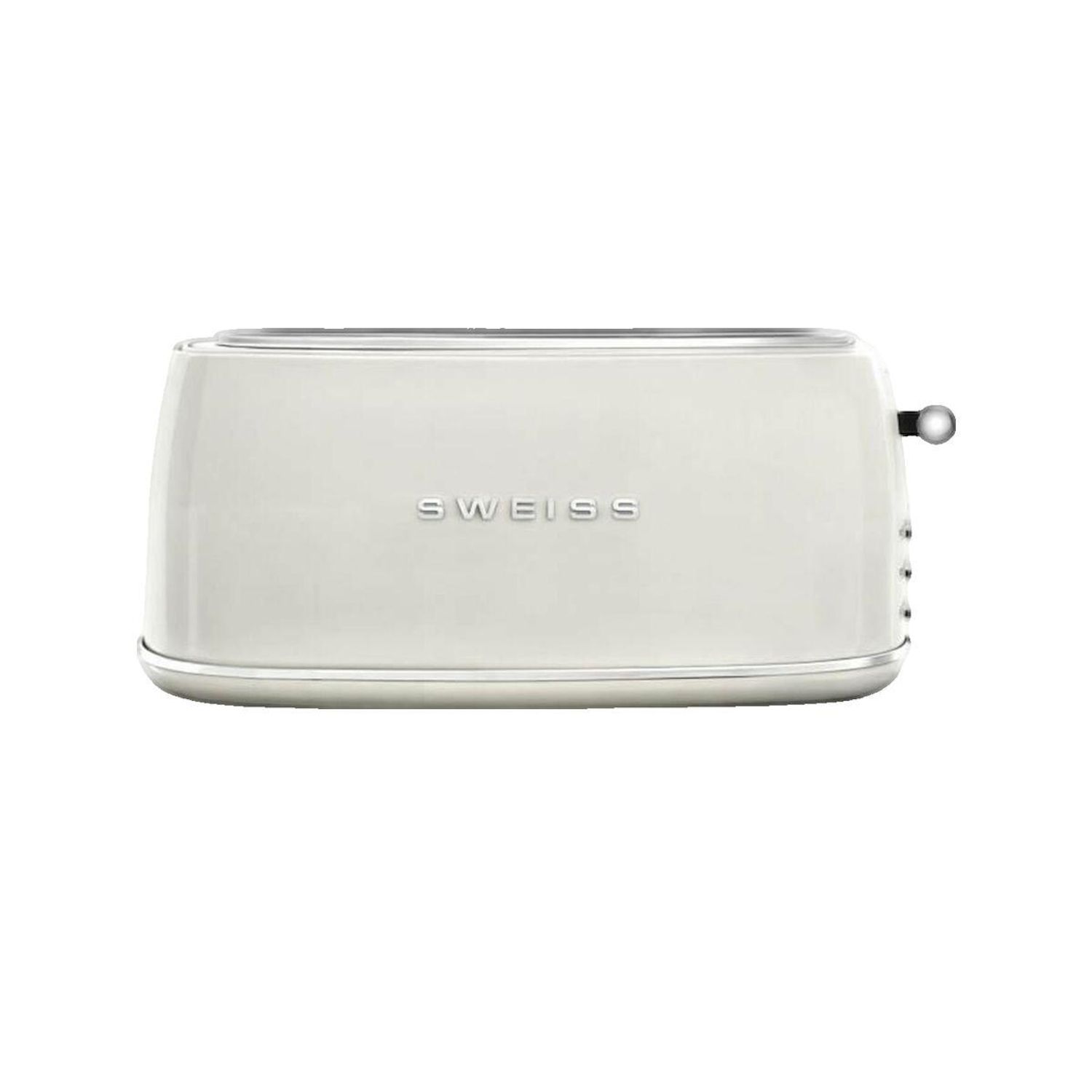 Le grille-pain vintage GRV8 de marque sweiss est idéal pour griller baguettes et pains. Il dispose de 2 fentes permettant de toaster jusqu'à 4 tranches ou 2 tranches de baguette. Ses fonctions incluent décongélation, réchauffement et annulation, avec un thermostat réglable à 6 niveaux pour personnal