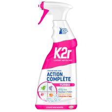 - Pulvériser K2R détachant avant lavage à 10 cm environ des tâches à traiter. - Utiliser une quantité de produit suffisante pour couvrir complètement les tâches. - Laisser agir le produit pendant 5 minutes, puis laver immédiatement votre linge en machine avec votre dose de lessive habituelle en respectant les consignes figurant sur les étiquettes des textiles. - Ne pas attendre que le produit est séché sur le linge."