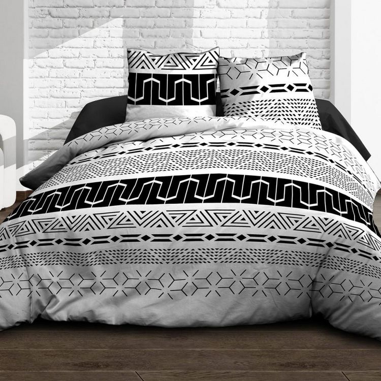 Transformez l'ambiance de votre chambre avec cette superbe parure 4 pièces Graphic fabriquée entièrement en coton au tissage très serré 57 fils. Imprimée d'un motif graphique très actuel, elle apportera une ambiance relaxante dans l'air du temps à votre chambre.Cette parure 4 pièces Graphic est comp