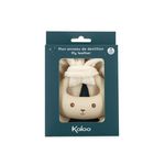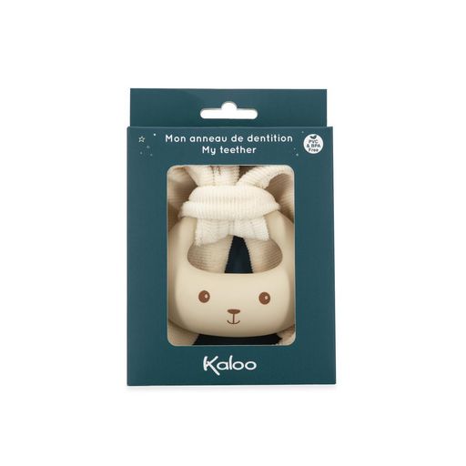 anneau de dentition en caoutchou avce oreilles de lapin en tissu.