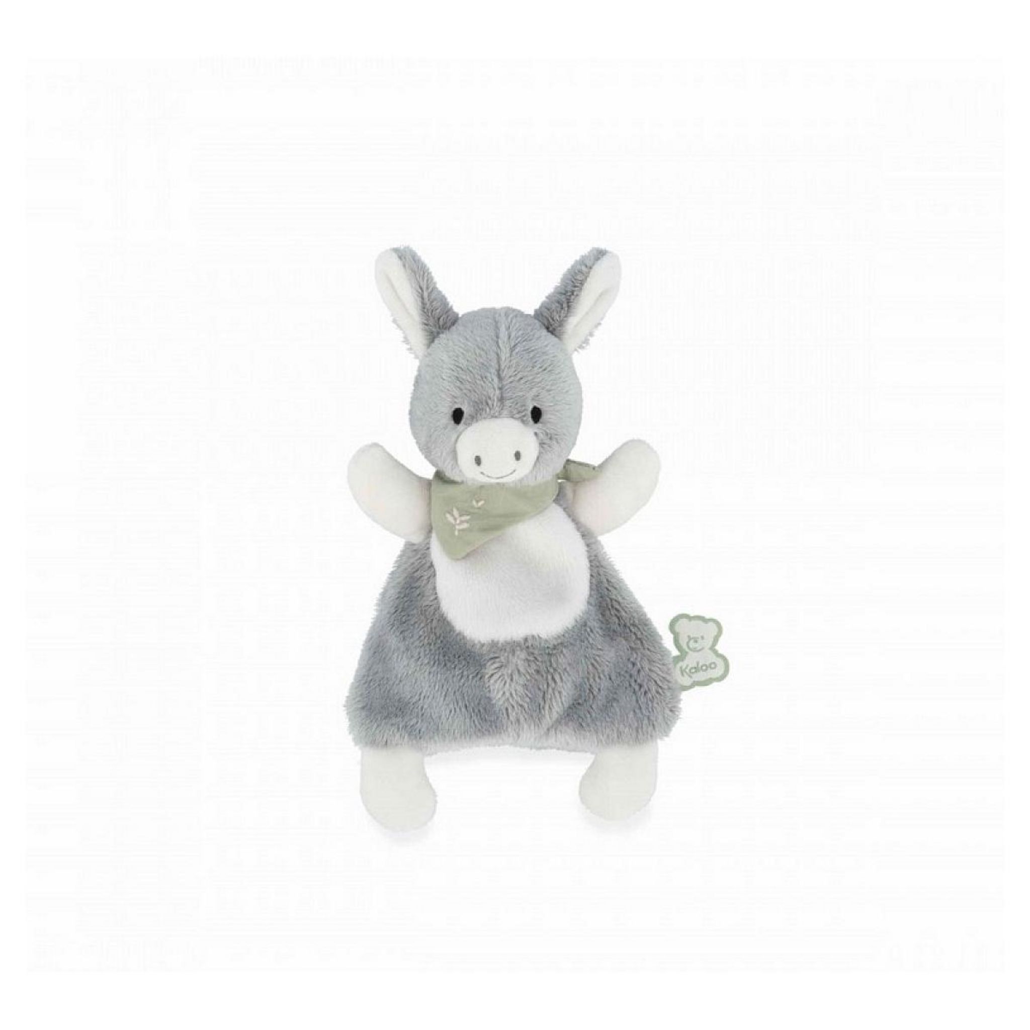 ? Doudou âne d'une grande douceur. ? Cadeau de naissance idéal pour bébé. ? Facile à saisir pour de gros câlins. Offrez un petit âne comme doudou pour bébé, synonyme de sensibilité et d'empathie ! Adapté dès la naissance, ce doudou plat a tout pour plaire : des éléments faciles à saisir par bébé, une douceur incomparable, une jolie frimousse, une taille et une forme adaptées aux plus petits. Son petit nom ? C'est Régliss', l'ânon sensible qui incarne la fidélité et la ténacité. Il invite à la douceur et à l'affection et fait partie de notre collection Les Amis de Kaloo. Emblème de cette collection, le bandana vert en coton présent autour du cou de l'animal ajoute une touche raffinée à son apparence. Il est décoré de broderies sur le thème de la nature, renforçant le lien du petit âne avec l'environnement dans lequel il évolue. Ce doudou plat mesure 18 cm et possède un corps pensé pour recevoir les plus gros des câlins : un ventre tout doux et contrasté, avec des petites pattes faciles à saisir par bébé. Sans parler de ses oreilles trop craquantes ! Aussi mignon que doux, ce petit doudou est le cadeau idéal pour la naissance de bébé. Comme notre cher Régliss', votre tout-petit sera peut-être d'un naturel créatif et déterminé ? Avec son regard doux et sa personnalité attachante, ce petit âne est prêt à faire partie de la vie de bébé. Il est composé de fourrure synthétique (polyester) et de rembourrage en polyester recyclé. Vous pouvez laver ce doudou âne en machine, pour un entretien facile. Alors, prêt à adopter Régliss' ?