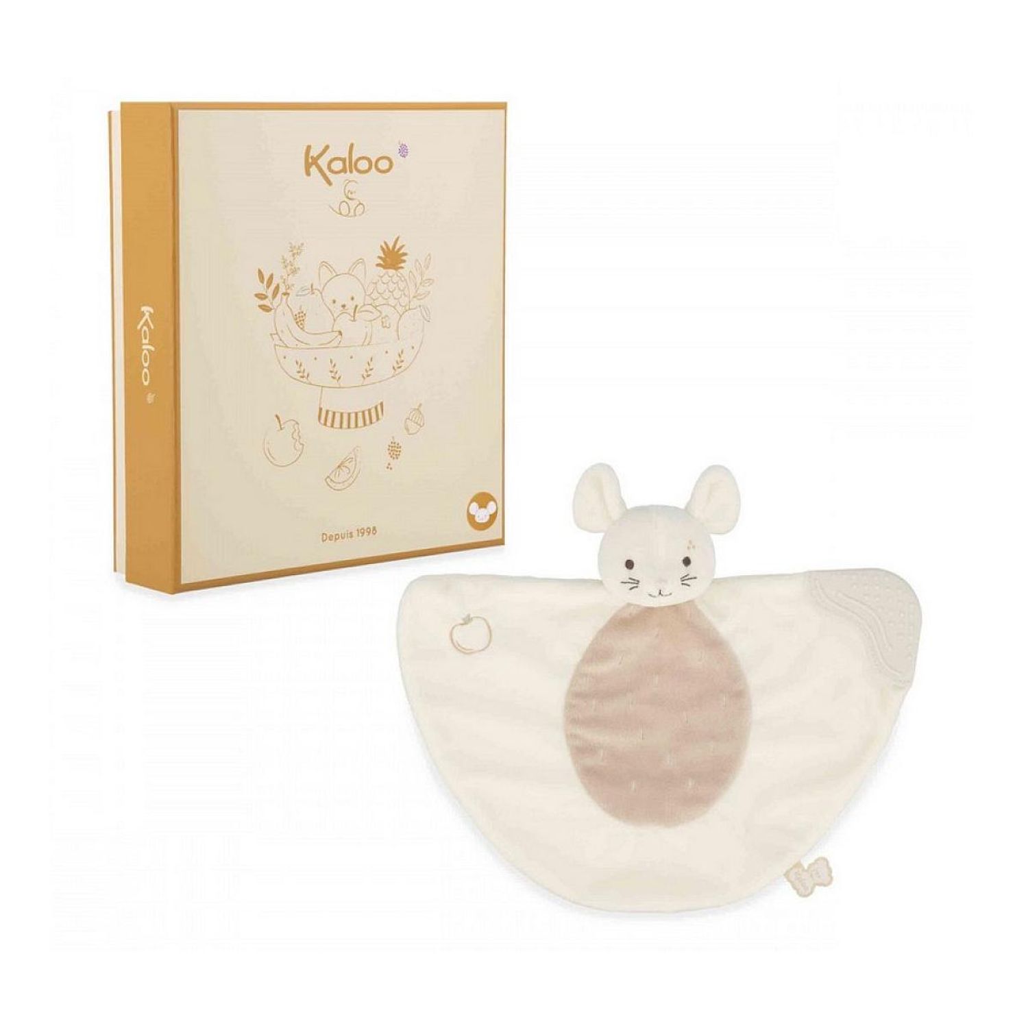 Ce doudou souris est le compagnon idéal pour les poussées dentaires de bébé ! Cadeau de naissance utile et original, ce doudou de dentition possède une extrémité ornée de rainures et de petits picots qui massent en douceur les gencives douloureuses de bébé. Apaisante, cette partie souple en silicone peut être mise à la bouche à l'infini ! Avec sa texture en micro-velours toute douce et sa frimousse attachante, ce compagnon grignoteur invite à de nombreux câlins et réconforte bébé au quotidien dans ses petits moments de chagrin. Sa couleur douce et délicate dans les tons crème et beige crée une atmosphère chaleureuse et rassurante pour bébé. Son autre extrémité est habillée d'une jolie broderie représentant son fruit préféré : la pomme. Ce petit détail plein de tendresse, que bébé peut s'amuser à observer et à toucher, ajoute une touche d'originalité et de poésie au doudou. Confectionné avec soin, ce doudou en micro-velours et silicone est composé avec au moins 77% de matières recyclées, y compris son rembourrage en polyester recyclé. Il est présenté dans une adorable boîte cadeau.