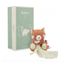 Bébé va adorer ce compagnon du sommeil à la fourrure toute douce ! Cet adorable panda roux au pelage orangé réconforte et câline bébé pendant la nuit, tel un repère. Prêt à aller dormir, il tient fermement son petit lange en mousseline. Le lange est un allié précieux pour le sommeil de bébé : léger et aérien, il renforce le rituel du coucher, offre une texture rassurante à manipuler et qui retient plus facilement les odeurs familières grâce à sa mousseline douce. Les jolis détails végétaux présents sur le lange et sous ses pattes participent à ce sentiment de sécurité et de calme. Les motifs de feuillage et de petites baies rappellent l'habitat naturel du panda roux, niché au c?ur des forêts, et apportent à bébé une sensation de douceur et de connexion avec la nature. Instaurer un rituel du sommeil réconfortant est essentiel pour aider bébé à se sentir rassuré et à comprendre que le moment du coucher approche. Idéal dès la naissance, ce doudou accompagne bébé dans ses premières nuits et devient vite son compagnon indispensable. La queue, facile à attraper, offre un point de préhension stimulant pour les petites mains. Discret et paisible, le panda roux est un animal qui aime la tranquilité. Cet état d'esprit serein inspire ce doudou, qui transmet à bébé la douceur et la quiétude nécessaires pour se préparer au sommeil. De petite taille, ce compagnon de 12 cm aux formes arrondies est facile à agripper. Confectionné avec soin, ce doudou est composé avec au moins 80% de matières recyclées. Livré dans une jolie boîte cadeau.