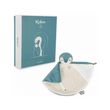 Ce doudou vert est synonyme d'affection et d'attachement ! Adapté à bébé dès la naissance, ce doudou manchot a tout pour plaire : diverses matières à toucher à l'infini, des broderies et rubans délicats, une adorable frimousse, et une petite particularité qui vous permettra de maintenir ce lien si spécial qui unit un enfant à son parent. En effet, ce doudou plat est composé de velours côtelé, de fourrure synthétique (polyester) et de mousseline de coton. Cette dernière est une matière imprégnant facilement les odeurs, ce qui permet au parent de garder le doudou manchot près de lui avant de le donner à bébé, et ainsi lui offrir une présence apaisante. C'est un véritable atout lorsque la séparation est difficile pour le tout-petit, au moment du coucher ou avant une journée bien remplie à la crèche, par exemple. En plus de cette variété de matières agréables à parcourir, ce doudou vert arbore un joli c?ur brodé, symbole de tout l'amour que vous portez à bébé. Synonyme de protection et de complicité, un ruban décoré d'un c?ur permet de nouer les ailes du manchot entre elles. Cela peut aussi être très pratique pour y accrocher une tétine ! Tout en rondeur, ce doudou plat mesure 24 cm de hauteur et est lavable en machine. Le rembourrage présent au niveau de la tête est en polyester recyclé. Présenté dans son adorable coffret assorti, voilà un cadeau de naissance idéal pour l'arrivée de bébé ! La boîte est personnalisable et peut être réutilisée pour conserver précieusement les premiers souvenirs du tout-petit. La diversité des matières, l'intense douceur et la possibilité de rassurer bébé grâce à une odeur familière, font de ce doudou Kaloo un compagnon sûr et rassurant. * Matière(s) Fourrure synthétique, velours côtelé, mousseline de coton. * Coloris principal Vert. * Taille 24 cm. * Rembourrage 100 % polyester recyclé. Entretien. *. Lavable en machine à 30°C