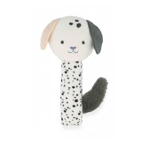 Miroir, mon joli miroir? qui est le plus mignon des bébés ? Découvrez un hochet petit chiot et son miroir intégré pour s'émerveiller dès la naissance ! Conçu en collaboration avec des psychomotriciens, ce hochet d'éveil de 14 cm a été pensé pour développer les sens de bébé en douceur. Votre petit secoue, écoute, sourit? le hochet diffuse un bruit doux et agréable à chaque mouvement pour éveiller l'ouïe de bébé et sa coordination oeil-main. Grâce à sa taille adaptée aux petites mains, le hochet est facile à saisir et développe la préhension des tout-petits. Avec sa fonction miroir, cet adorable chiot encourage l'exploration visuelle. Bébé découvre son reflet et s'amuse à se reconnaître tout en câlinant son nouveau compagnon. Quand il agite le hochet, bébé stimule également son sens du toucher grâce aux différentes textures. Fabriqué avec soin, ce petit compagnon doit son incroyable douceur à sa composition en micro-velours et fourrure synthétique. Idéal pour les premières découvertes sensorielles, ce hochet est doté de couleurs et d'imprimés à pois contrastés adaptés aux tout-petits. Des détails pensés pour stimuler la vue de bébé dès le plus jeune âge ! Pour l'utiliser, vous pouvez, dans un premier temps, montrer à bébé le petit chiot en le secouant doucement pour éveiller sa curiosité? puis le laisser explorer et découvrir lui-même ses surprises lorsqu'il commencera à saisir des objets. Un jouet d'éveil complet pour stimuler tous les sens de bébé ! Lavable en machine à 30°, ce hochet fait partie de la gamme Stimuli de KALOO, développée en collaboration avec des psychomotriciens pour aider bébé à développer ses compétences sensori-motrices dès la naissance.