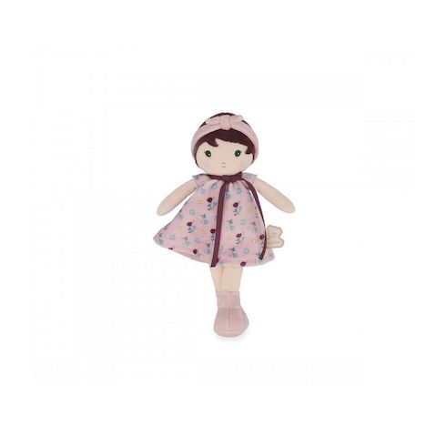 Faites la rencontre de Léonie, une poupée en tissu ornée de motifs floraux, dans son format 25 cm. Adaptée à bébé dès sa naissance, elle fait partie de la collection de poupées Tendresse de Kaloo. La poupée Léonie porte une sublime robe avec des imprimés floraux, reflétant sa grâce et sa simplicité. Assorties à son bandeau, ses bottes préférées sont parfaites pour courir dans l'herbe encore humide de la rosée matinale. Léonie est une petite poupée qui incarne la liberté et la connexion à la nature. D'une grande douceur, elle est parfaite à saisir et à câliner par les plus petits. On craque tous pour ses beaux yeux verts et son élégant ruban autour du cou ! À emporter partout pour vivre de douces histoires comme les plus folles aventures, c'est une amie toujours prête pour les câlins. Au dos de cette poupée brune, vous trouverez un ruban cousu qui permet d'inscrire le prénom son petit propriétaire. Présentée dans sa jolie boite, Léonie est un cadeau de naissance original et synonyme de tendresse. Elle est aussi parfaite comme première poupée pour stimuler l'imagination des tout-petits. Le velours côtelé et le rembourrage qui la composent sont à base de polyester recyclé, pour une composition à 86% en matières recyclées. Lavable en machine, cette charmante petite poupée est prête à être adoptée !