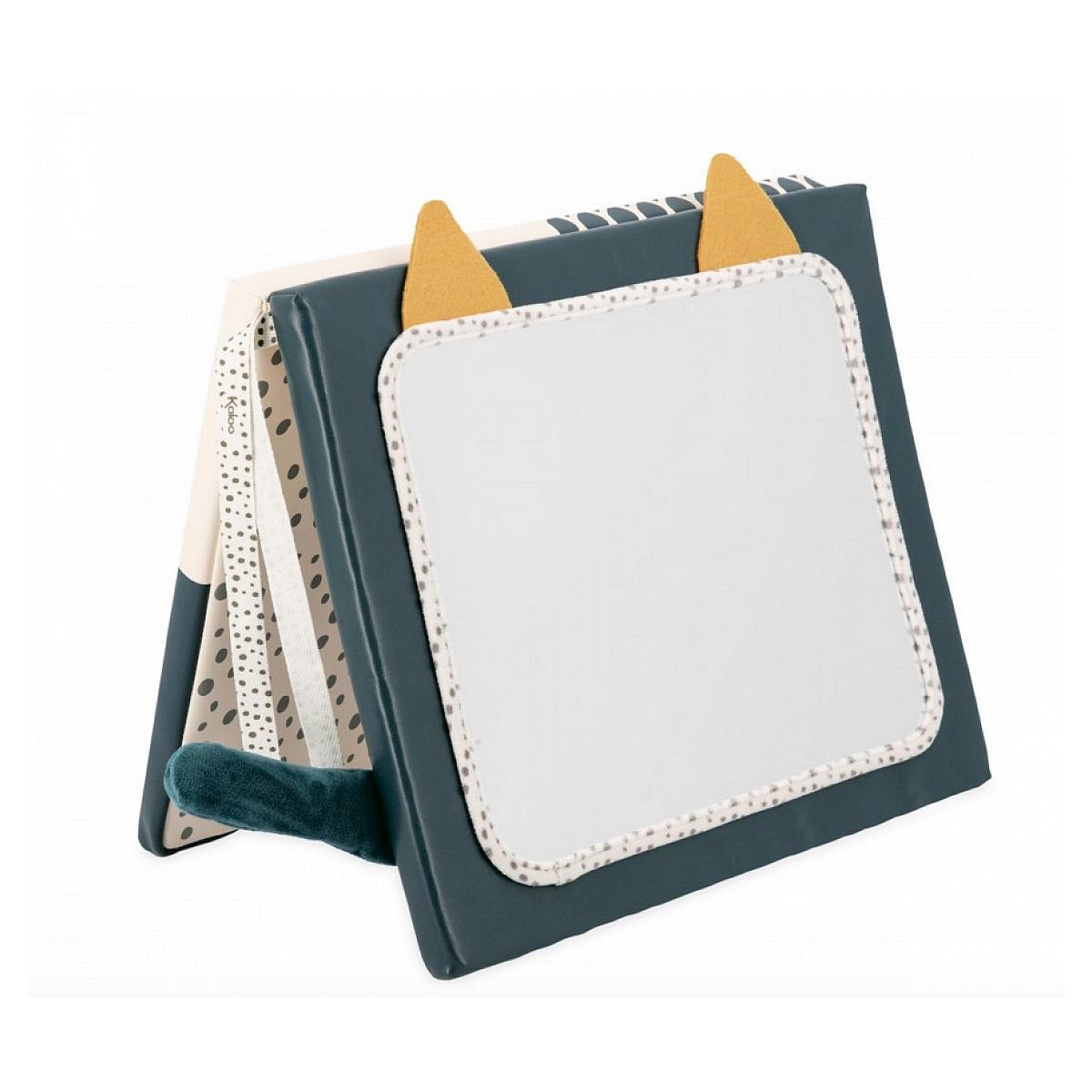 Le premier miroir de bébé, pour l'éveiller et stimuler ses sens ! Les tout-petits adorent les miroirs : quoi de plus intriguant que de découvrir son reflet, en comprendre le mouvement .. Avec son miroir sensoriel, bébé développe ses notions de perception visuelles, notamment des contrastes. En plus de la toile effet miroir, d'autres faces décorées de motifs variés et contrastés viennent stimuler la vue de l'enfant. Adapté dès la naissance, ce jouet d'éveil Kaloo se place face à bébé pour l'aider à focaliser son attention tout en l'amusant. Pour toujours plus de divertissement, des petites oreilles et des rubans faciles à saisir sont accessibles et peuvent être utilisés pour accrocher le miroir au parc, par exemple. Léger et facile à transporter, ce miroir jouet mesure 24,5 x 29 cm. Il a été pensé pour la stimulation visuelle de bébé à l'aide de motifs adaptés au rythme du développement de la vue et peut se moduler pour proposer différentes activités à l'enfant. Facilement lavable, enfants et parents s'approprient ce jouet d'éveil sensori-moteur aisément. Voilà un cadeau de naissance idéal pour accompagner bébé dans son développement ! Ce miroir d'activités est composé de toile synthétique et de micro-velours extra-doux, il est rembourré avec du rembourrage à base de polyester recyclé. Ce miroir sensoriel fait partie de la gamme Stimuli de KALOO, développée en collaboration avec des psychomotriciens pour aider bébé à développer ses compétences sensorielles et motrices dès la naissance.