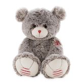 Ours de 38 cm à la fourrure couleur grise, choisie spécialement pour sa douceur exceptionnelle. Ses longs bras et grandes oreilles sont faciles à attraper, et offrent de tendres grands câlins. Sa grande taille lui permet de bien tenir assis pour une présentation optimale dans la chambre de bébé. Un