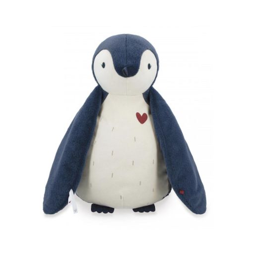 * Grande peluche manchot de 50 cm. * Gros câlins et belles histoires en perspectives. * Avec lange en coton pour envelopper bébé de douceur. Une grande peluche manchot pour de gros câlins ! Accompagnée de son lange d'emmaillotage, notre adorable manchot bleu apporte douceur et charme à la chambre de