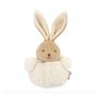 L'emblématique peluche lapin Kaloo en version mini ! Mesurant 12 cm, ce pompon lapin est doté d'un ventre en fourrure incroyablement doux et moelleux, parfait pour les câlins. Bébé peut facilement attraper son nouvel ami en peluche par ses longues oreilles toute douces en micro-velours ! De couleur crème, ce lapin est habillé d'un joli foulard à l'imprimé vichy, lui donnant un style intemporel. En plus de sa jolie bouille, cette peluche lapin possède de délicats points brodés au coin de son ?il qui invitent bébé à explorer et à développer son sens du toucher. Grâce à des rubans élégants, ce mini patapouf lapin s'attache partout : au lit, à la poussette ou au sac à langer.