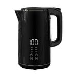 Découvrez la bouilloire sans fil Kalorik TKG JK 2000, un appareil moderne et élégant conçu pour la cuisine. Avec une capacité de 1,7 litre et une puissance de 2200 watts, elle chauffe l'eau rapidement. Elle dispose d'un écran numérique affichant la température en temps réel et offre six niveaux de température réglables de 40°C à 100°C par paliers de 10°C, adaptés pour le thé ou la préparation de nourriture pour bébé. Sécurisée grâce à la coupure automatique, la protection contre le fonctionnement à vide, et un indicateur de niveau d'eau, cette bouilloire est facile à utiliser avec son panneau de contrôle tactile. Elle inclut également un filtre amovible anti-calcaire, un maintien au chaud jusqu'à 4 heures, et une base rotative à 360°. Fabriquée en métal et plastique, elle pèse 1,612 kg. Profitez d'un appareil innovant alliant design contemporain et technologie avancée pour un usage quotidien.