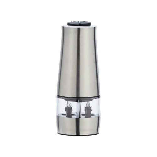 Découvrez le moulin à épices électrique 2 en 1 Kalorik, conçu pour faciliter le broyage du sel, du poivre et d'autres épices. Ce moulin dispose de deux chambres transparentes permettant de conserver différentes épices séparément. Fabriqué en acier inoxydable, acrylique et céramique, il allie durabilité et élégance. Son mécanisme innovant préserve les arômes et offre un dosage précis grâce à la lampe LED intégrée, idéale pour une utilisation même dans des conditions de faible luminosité. Léger et silencieux, il fonctionne avec 6 piles AAA, assurant une utilisation pratique et agréable en cuisine.