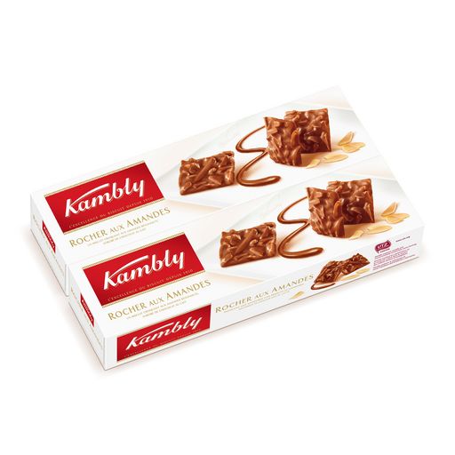 Biscuits croquants aux amandes-bâtonnets, enrobés de chocolat au lait.