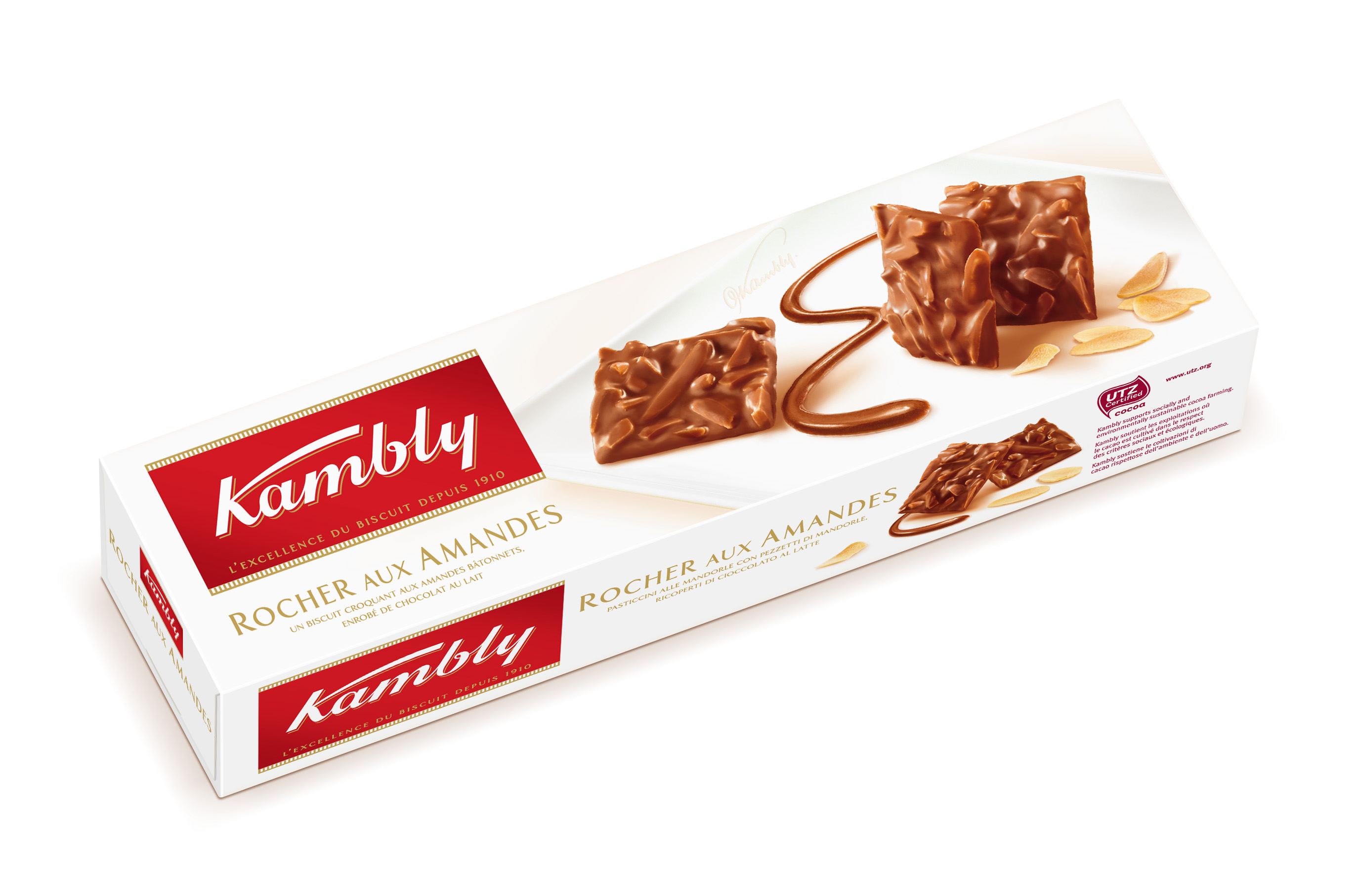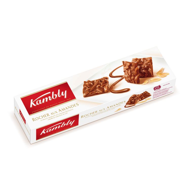 Biscuits croquants aux amandes-bâtonnets, enrobés de chocolat au lait.