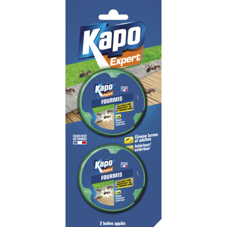 Nom du produit: InsecticideCible (animaux, parasites, maladies...): fourmisPrésentation de la substance: PiègeBesoin: EradiquerDestination: Extérieur / intérieurEpoque d'emploi: Toute l'annéeMode d'action: Piège (piège le parasite)Marque du produit: KAPOContenance: 2 boîtesPrêt à l'emploi: OuiPrécau