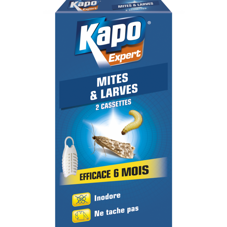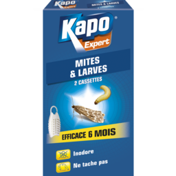 Ne tache pas vos vêtements et est inodore.Muni d'un crochet de suspension, il est idéal pour les penderies.Nom du produit: InsecticideType de produit: Diffuseur tabletteBesoin: EradiquerDestination: IntérieurEpoque d'emploi: Toute l'annéeMode d'action: Piège (piège le parasite)Marque du produit: KAP