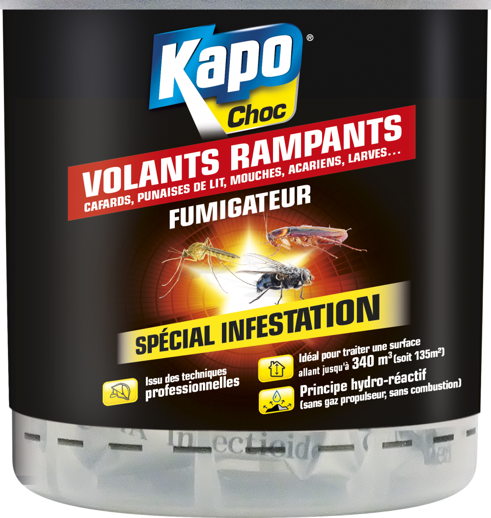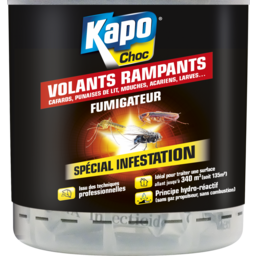Action radicale et longue durée. Peut être utilisé dans des bureaux : sans risque pour le matériel électrique ou informatique. Local réutilisable immédiatement. Ne tache pas. Sans dépôt.Le Fumigateur Tous Insectes Kapo détient une action radicale et longue durée sur tous types d'insectes : insectes
