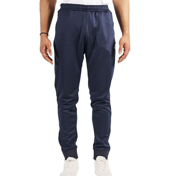 Craquez pour le Jogging de la marque KAPPA ! Coloris: Bleu Logo Kappa en relief sur l'avant Cordon de serrage Elastique de maintien à la taille et aux chevilles Zip métallique sur les chevilles Deux poches latérales zippées Composition : 65% Polyester, 35% Coton