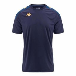 Découvrez ce maillot de sport de la marque Kappa !Couleurs : Marine/JauneCoupe altiqueCol rondManches courtesComposition : 100% polyester