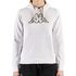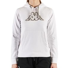 Craquez sur ce sweat à capuche pour femme de la marque KAPPA !Coloris : Blanc / GrisManches longuesPoche kangourouCapuche fermeture avec liensCoupe SlimLogo KAPPA centrée sur la poitrineComposition : 75% coton , 23% polyester , 2% élasthanne