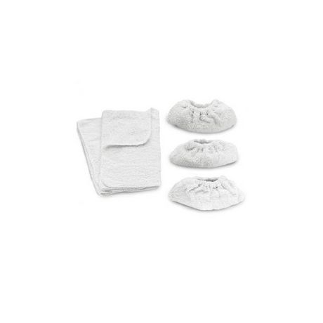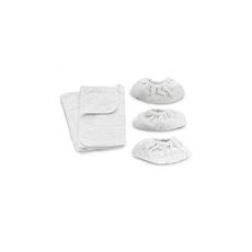| Composition du kit - Contenu de la boite | Kit de chiffons avec 2 grandes serpillères et 3 bonnettes pour la buse a main | |