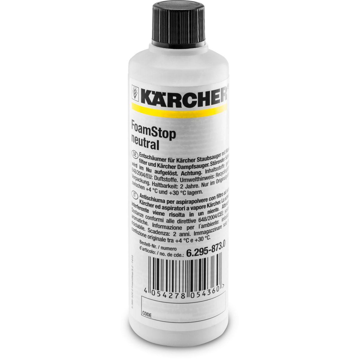 Caractéristiques générales Marque Karcher Type de produit Solution anti mousse Compatible avec Aspirateur traîneau Modèle(s) compatible(s) Aspirateurs Kärcher avec filtration par eau DS Plus produit La mousse gênante est rapidement cassée à l'aide de cet anti-mousse liquide (125