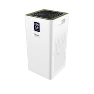 Le purificateur d'air Karcher AF 50 purifie efficacement l'air dans les espaces de vie jusqu'à 50 mètres carrés. Il est doté d'un design élégant en noir et blanc avec des matériaux robustes. Ce modèle élimine 99,95% des particules de 0,3 micromètre grâce à sa filtration HEPA multicouche. L'écran alp