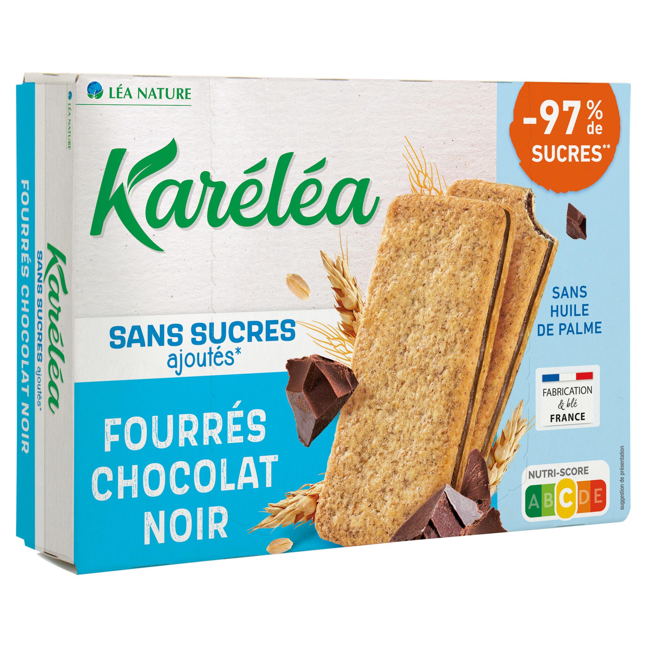 Faites vous plaisir avec ces biscuits fourrés chocolat noir Karelea ! Un plaisir sans sucres ajoutés, alliant la croustillance du biscuit et la générosité d'un fourrage chocolat noir, avec 97% de sucres en moins ques les produits de même catégorie. A déguster à tout moment de la journée ! Sans huile de palme 97% de sucres en moins Fabriqué en Charente Maritime dans notre biscuiterie Farine française moulue à moins de 100km de la biscuiterie Etui + sachet recyclable Sans sucres ajoutés Riche en fibres 3 sachets de 2 biscuits