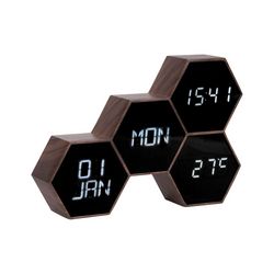 Réveil Six 4 facettes hexagonale - Marron effet bois