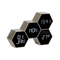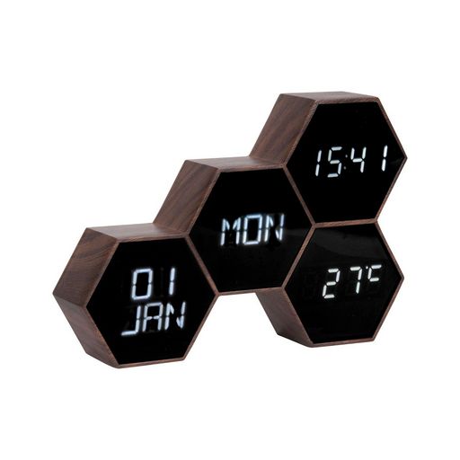 Ce réveil numérique moderne de la marque Karlsson est d'une grande aide pour se réveiller à l'heure. Mais ce n'est pas tout ce que les Six peuvent faire ! Ce réveil au design hexagonal indique le jour, la date et la température. Il réagit également au toucher ou au son, n'est-ce pas facile ? Le réve