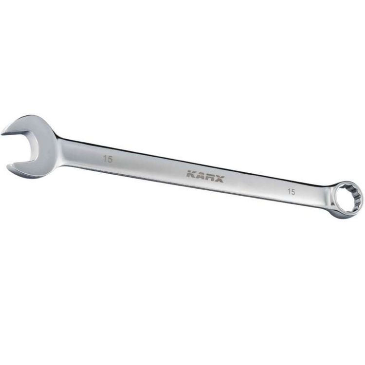 Clé plate mixte Cr-V tête fourche et tête oeil en Chrome Vanadium de la marque Karx. Clé à tête longue contre coudée pour une passage aisée dans les endroits encombrés. Une longueur de corps importante pour des couples de serrage puissants.