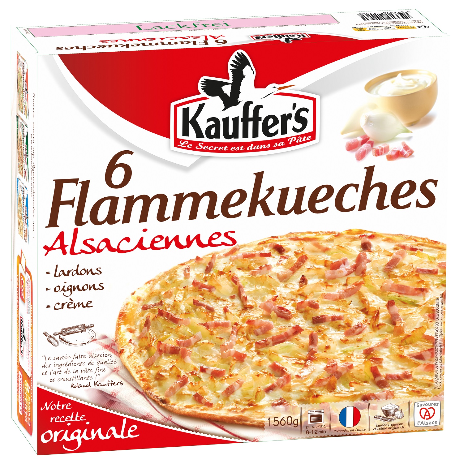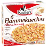Garnie d'un mélange de crème fraîche, de fromage blanc, de lardons et d'oignons, cette Flammekueche est un grand classique de la gastronomie alsacienne. Avec son goût délicieux, sa texture moelleuse et son aspect doré, elle peut se déguster en plat principal avec une salade verte et une bière fraiche ou tout simplement pour une pause snack.
