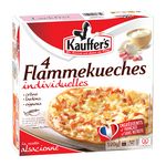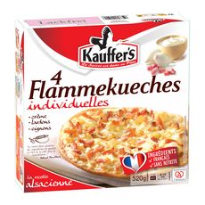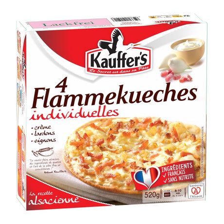 Grand classique de la gastronomie alsacienne, cette Flammekueche au format individuel sera parfaite pour les petits appétits ou pour ceux qui préfèrent proposer une Flammekueche à chaque convive. Avec son savoureux mélange de crème et fromage blanc, et sa garniture riche de lardons et d’oignons, elle s’accompagnera très bien d’une salade pour un repas complet. Très pratique, elle se prépare en 8 à 12 minutes au four, sans décongélation préalable.