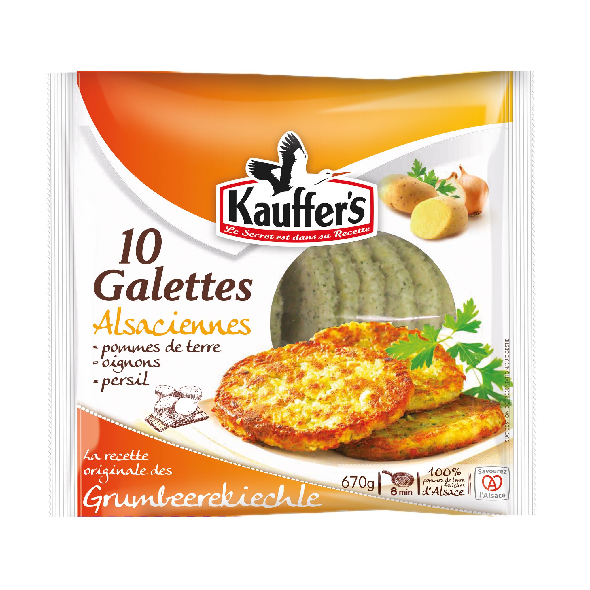 Les Grumbeerekiechle sont des galettes préparées à partir de pommes de terre fraîches d'Alsace. Bien moelleuses à l'intérieur et croustillantes à l'extérieur, elles sont non préfrites, donc sans apport en matières grasses. Parfaites, pour accompagner viandes et poissons, ou simplement avec une salade pour un dîner plus léger.