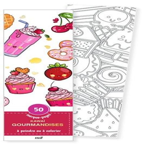 KAWAI GOURMANDISES. 50 MARQUE-PAGES A PEINDRE OU A COLORIER, Merci les livres
