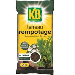 KB terreau rempotage 20L, Pour le rempotage de toutes les plantes en pots, bacs… Terreau avec engrais NF U 44-551, Fabriqué en France