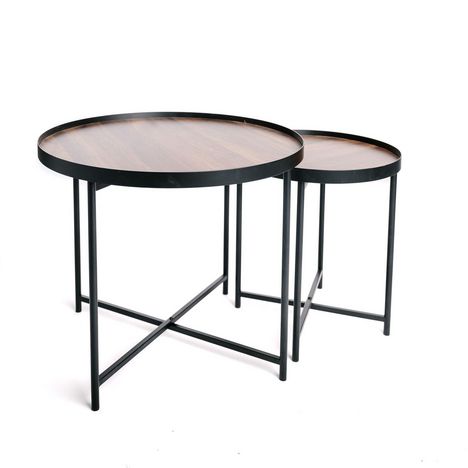 Lot de 2 tables d'appoint ou tables gigogne ronde en MDF et métal - Marron et noir