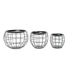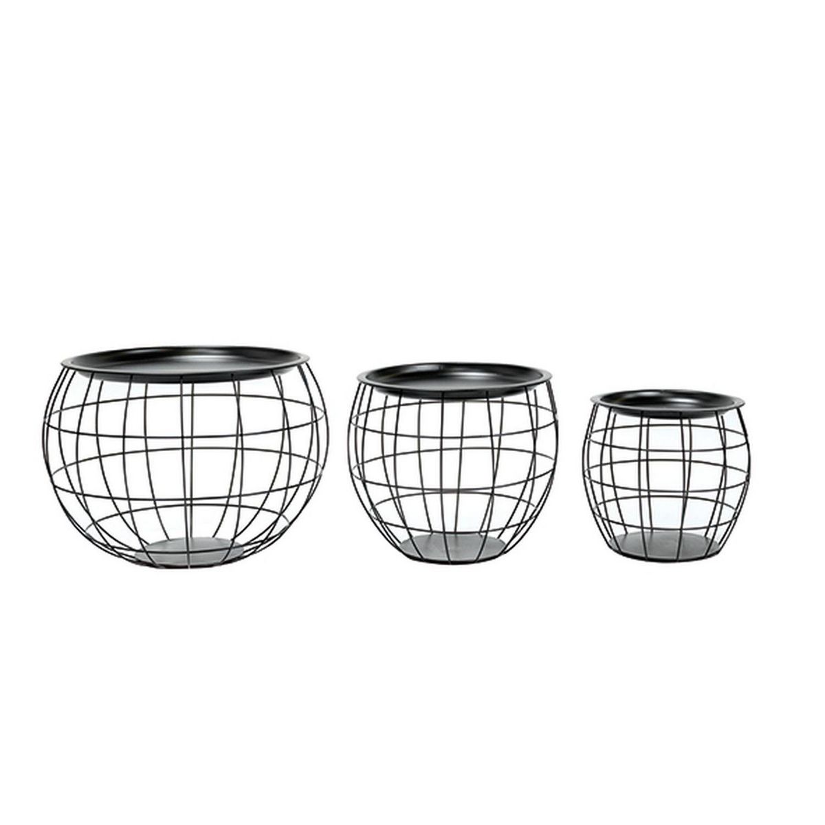 Lot de 3 tables d'appoint ou tables gigogne ronde effet boule en Métal - Noir