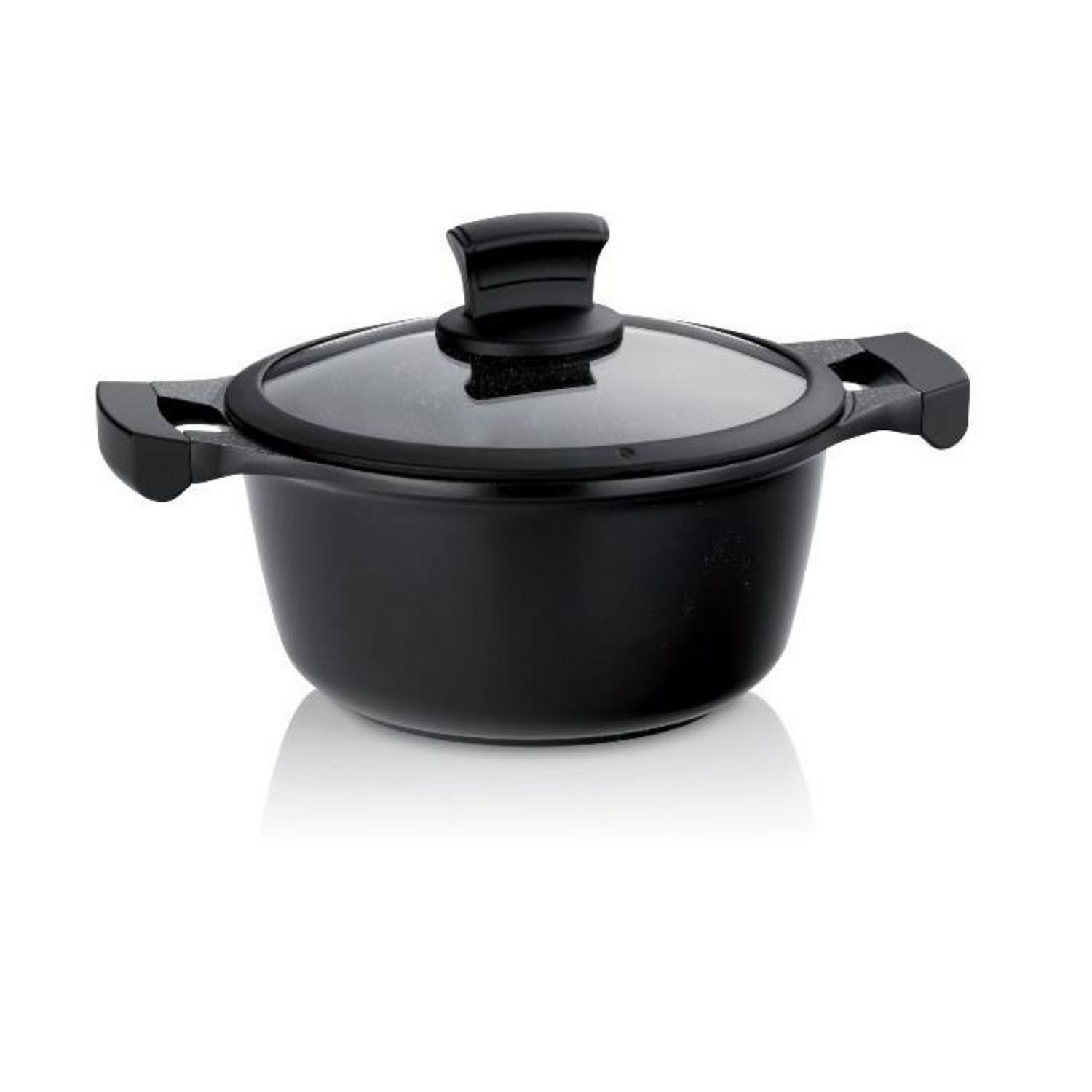 Kela Line 12218 Le faitout avec couvercle Stella Nova 12218 de Kela est une gamme d'ustensiles de cuisson au design attrayant permettant une cuisine saine et croustillante. En fonte d'aluminium avec revêtement anti-adhésif renforcé 3 couches résistant aux rayures et qui permet de cuire avec une peti